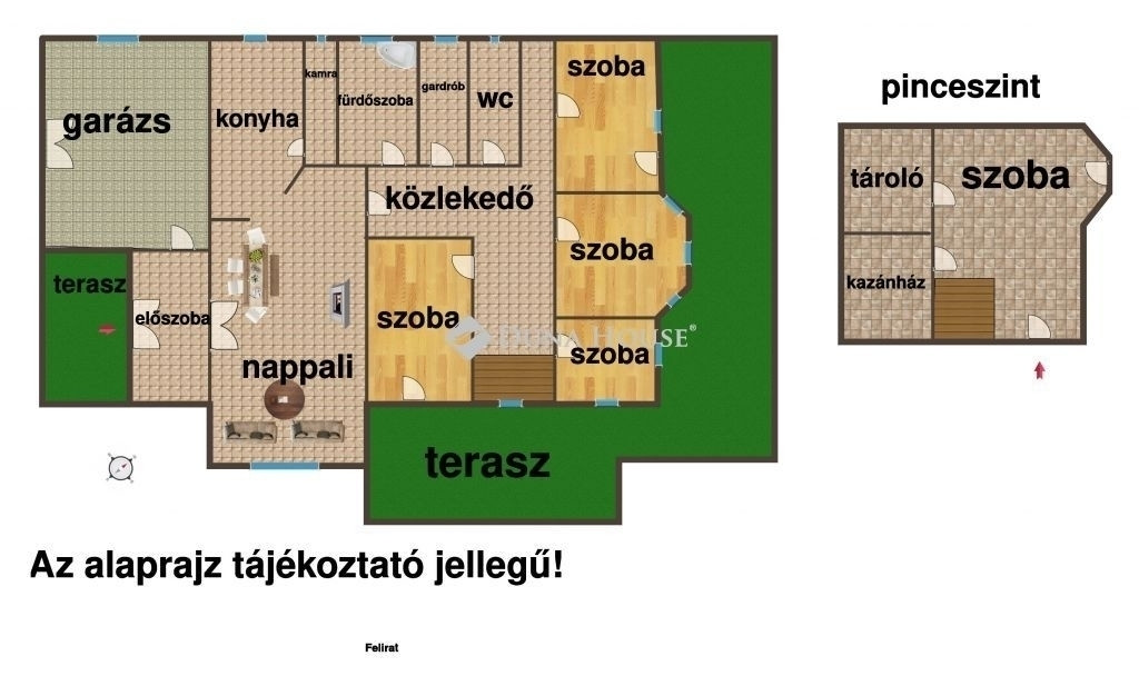 Az ingatlan részben alápincézett, ám a pinceszint is lakóminőségű, így további terek kialakítására is lehetőség van.
