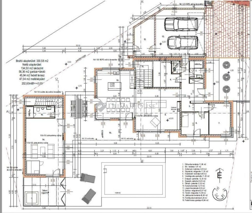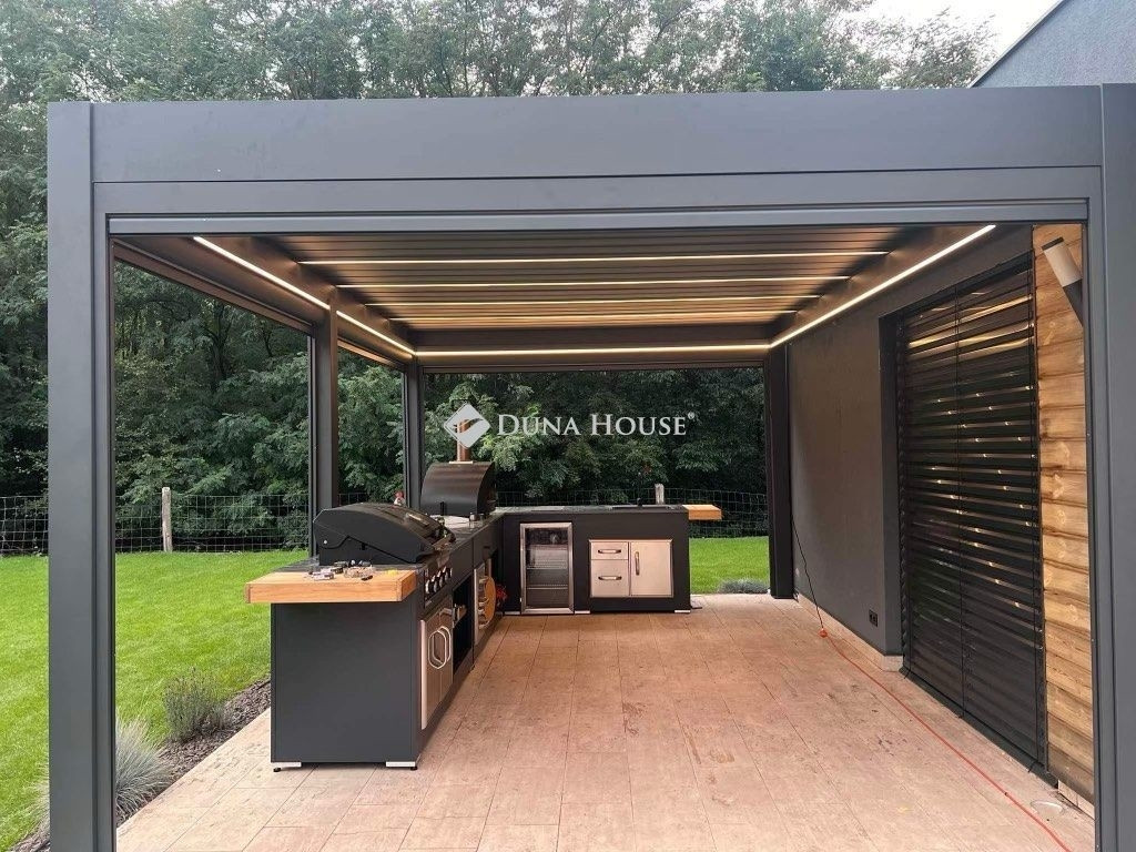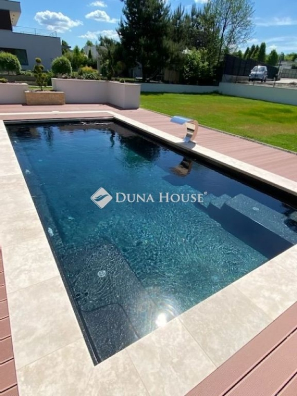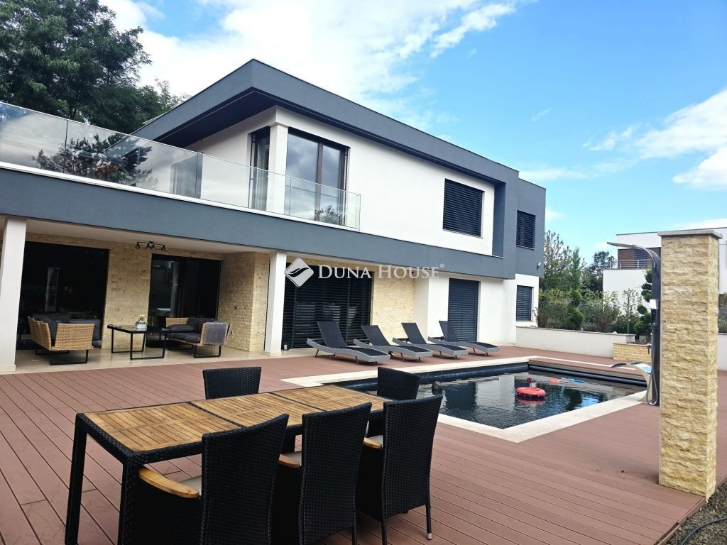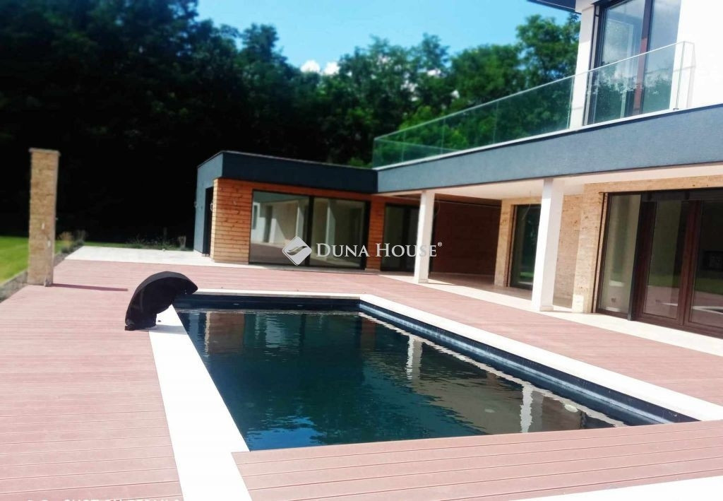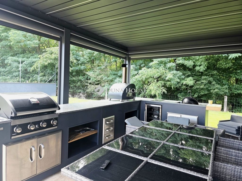 PRÉMIUM MINIMÁL VILLA KÜLTÉRI MEDENCÉVEL, SZAUNÁVAL ÉS TELJESEN KÉSZ BELSŐ TEREKKEL LAKE FOREST VILLAPARKEladó egy Budapesttől karnyújtásnyi távolságra található, zárt, őrzött luxus villaparkban álló, önálló, 416 m²-es, okosotthon-rendszerrel felszerelt családi villa 1 654 m²-es, parkosított telken, kétállásos teremgarázzsal.A nappali + 4 hálós, triplakomfortos otthon minden részlete a gondos tervezést és a kompromisszummentes anyaghasználatot tükrözi az ingatlan időközben teljes befejezést kapott, így az új tulajdonos azonnal élvezheti a prémium életérzést.Kiemelt újdonságokEmeleti, üvegfalú szauna az intim teraszon, közvetlenül a szülői lakosztályból megközelíthetően négy évszakos kikapcsolódás zöldpanorámával.Fedett kerti grillkonyha professzionális beépített gépekkel: nagyméretű gázgrill, mosogató, hűtő/fiókos tárolók, munkapult, külön pizzasütő kemence tökéletes szabadtéri vendéglátó tér.Nagyformátumú kőburkolatok és egyedi fényépítészet a reprezentatív belső terekben (dizájn LED-vonalvilágítás a márványhatású falon).Elegáns, fedett teraszok kőburkolattal, közvetlen kapcsolattal a kerthez és a medencéhez.Elrendezés & ÉletérzésA földszinti, hatalmas üvegfelületekkel megnyitott nappaliétkezőkonyha tér a fedett teraszra és a gondozott kertre tárul. Itt található a fűtött, 4×8 m-es Compass medence automata redőnyfedéssel sportoláshoz és családi pihenéshez egyaránt ideális.Az emeleti szülői lakosztály saját gardróbbal és fürdővel, valamint a szaunához nyíló privát teraszkapcsolattal rendelkezik; a további hálók külön fürdőblokkhoz csatlakoznak.Műszaki tartalom (válogatás)Loxone okosház-előkészítés és vezetékezés az egész épületbenLégtechnika: friss levegő befúvás (rekuperáció), elszívás szellőztetés ablaknyitás nélkülMennyezethűtésfűtés + padlófűtés, FUJITSU hőszivattyúA++ energiahatékonyság, 40 cm hőszigetelés, 3 rétegű nyílászárókNapelem/napkollektor teljes előkészítéseKözponti porszívó csövezésElektromos zsaluziák, távirányítható LED-szalagok helyiségenkéntVízteres kandalló kiállás frisslevegő-beszívássalHörmann elektromos garázskapu, ujjlenyomatos bejárati ajtó30×50 A elektromos ellátás, EV-töltő kiállás a garázsbanNappaliban 5.1 házimozi kiépítés, beépített páncélszekrényKamerarendszer és riasztó előkészítés, kétállásos padlófűtött garázs400 l-es HMV-tartályMedence & KertCompass 4×8 m carbon pools medence, 70 kg teherbírású automata redőnyAutomata vízkezelés/vegyszeradagolás, távvezérelt medencevilágításHidegmeleg vizes kerti és emeleti terasz-zuhanyParkosított, intim, zöldövezeti telek, prémium burkolatok és hatalmas, fedett/nyitott teraszfelületekIkonikus luxus ikonikus környezetben azoknak, akik a modern minimalizmust, a kifinomult anyaghasználatot és a kifogástalan műszaki tartalmat keresik.Bővebb információért és a részletes, helyszíni bemutatásért várom megkeresését.