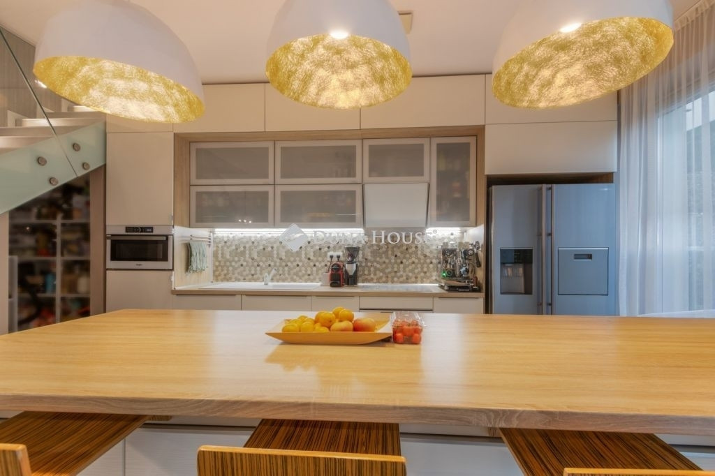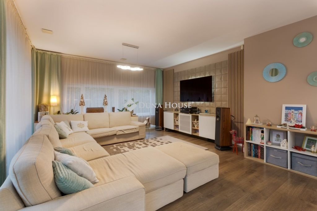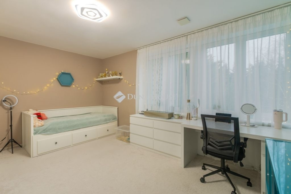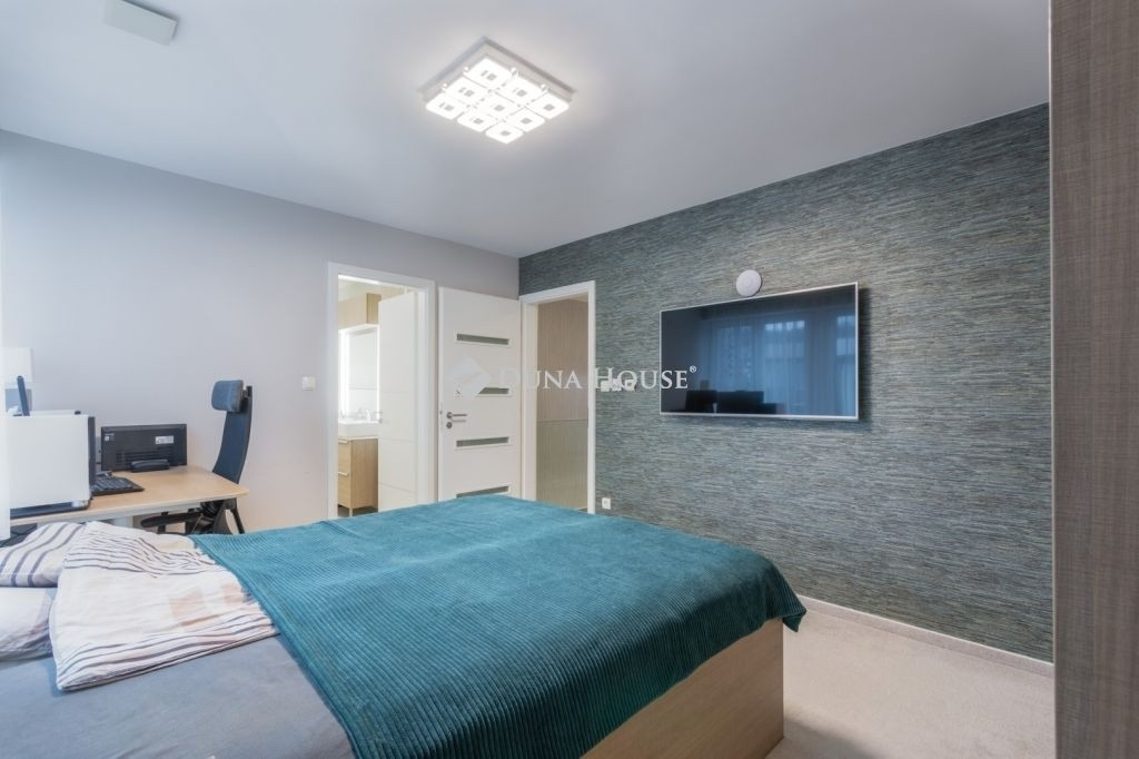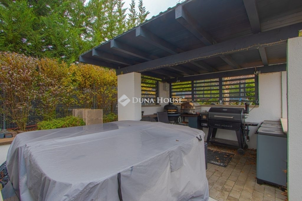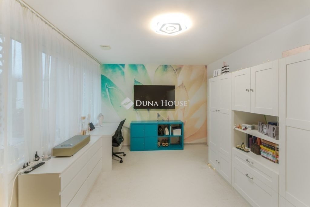 PRÉMIUM, MINIMÁL STÍLUSÚ IKERHÁZFÉL MAGAS MŰSZAKI TARTALOMMALEladásra kínálunk egy 2019-ben épült, újszerű állapotú, prémium kivitelű ikerházfelet, amely kialakításában, műszaki tartalmában és használhatóságában is a felső kategóriát képviseli.Az ingatlan 152 m² lakótérrel rendelkezik, a garázs és terasz súlyozott figyelembevételével a számított hasznos terület kb. 195 m².FŐBB PARAMÉTEREK- 152 m² lakótér, 195 m² számított terület- 38 m² fűtött, szigetelt, kétállásos garázs- 60 m² terasz, részben elektromos pergolával- 800 m² telek- Nappali + 4 hálószoba- 2 fürdőszoba- Építés éve: 2019ELRENDEZÉSA földszinten egy tágas, 52 m²-es nappaliétkezőkonyha biztosítja a családi élet központját, emellett előszoba és kiszolgáló helyiségek kaptak helyet.Az emeleten négy külön nyíló hálószoba és két fürdőszoba található, az egyik közvetlenül a szülői hálóból nyílik.MŰSZAKI TARTALOMAz épület Porotherm falazattal, monolit vasbeton födémmel, 18 cm külső hőszigeteléssel és 30 cm tetőszigeteléssel készült.A fűtésről és hűtésről hőszivattyús rendszer gondoskodik, mennyezeti és padló hőleadással, helyiségenkénti szabályozással. A melegvíz szintén hőszivattyúról működik. A házban központi hővisszanyerős szellőztető rendszer üzemel.A nyílászárók háromrétegű üvegezésűek, elektromos alumínium redőnnyel és szúnyoghálóval felszerelve.KÉNYELEM ÉS BIZTONSÁG- Okosotthon-rendszer- Elektromos redőnyök- Riasztó- és kamerarendszer- Kiépített, stabil wifi-hálózat- Minőségi burkolatok, szaniterek- Gépesített konyha a vételár részeKERT ÉS KÜLSŐ TEREKA kert automata öntözőrendszerrel ellátott, külön locsolásmérővel. A terasz ideális pihenésre és vendégfogadásra, az elektromos pergola révén árnyékolása rugalmasan szabályozható. A kert hátsó részén fedett kerti pavilion található, amely grillezésre is alkalmas.Megtekintés: előre egyeztetett időpontban, rugalmasan. Hívjon még ma, nehogy lemaradjon erről is!