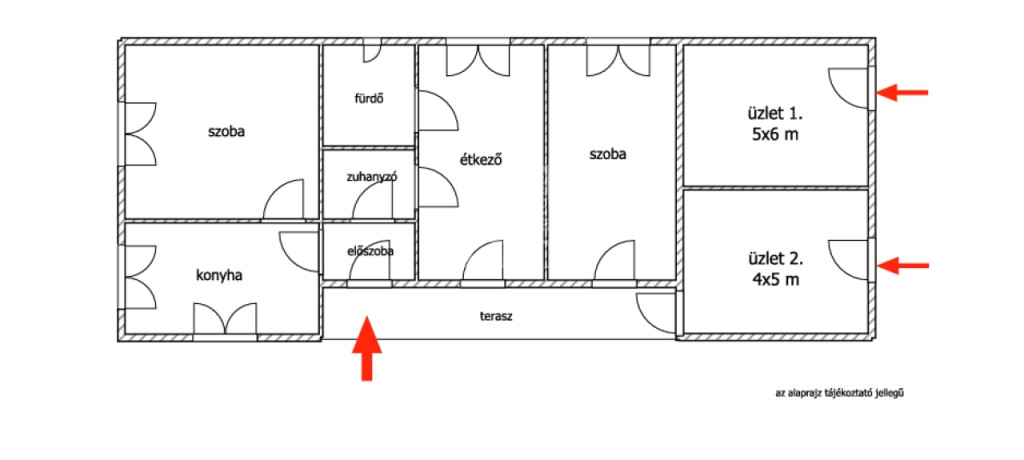 - ház alkalmas 5 szoba kialakítására is, avagy az étkezőt egybevonva az egyik szobával, és az üzleteket szobává alakítva, egy modern 3 hálószoba, plusz nappalis elosztast is ki lehet alakítani!