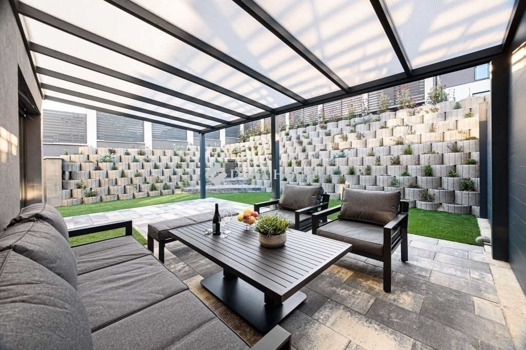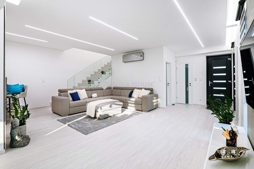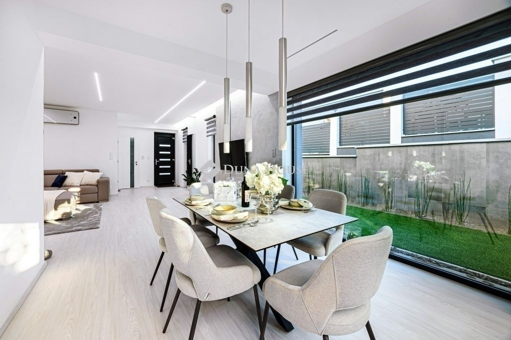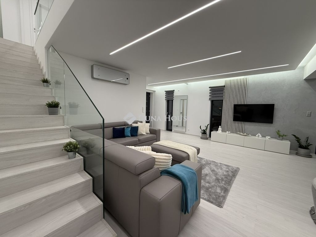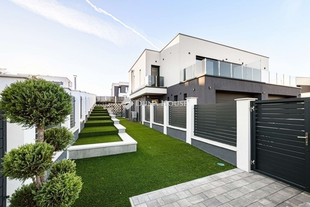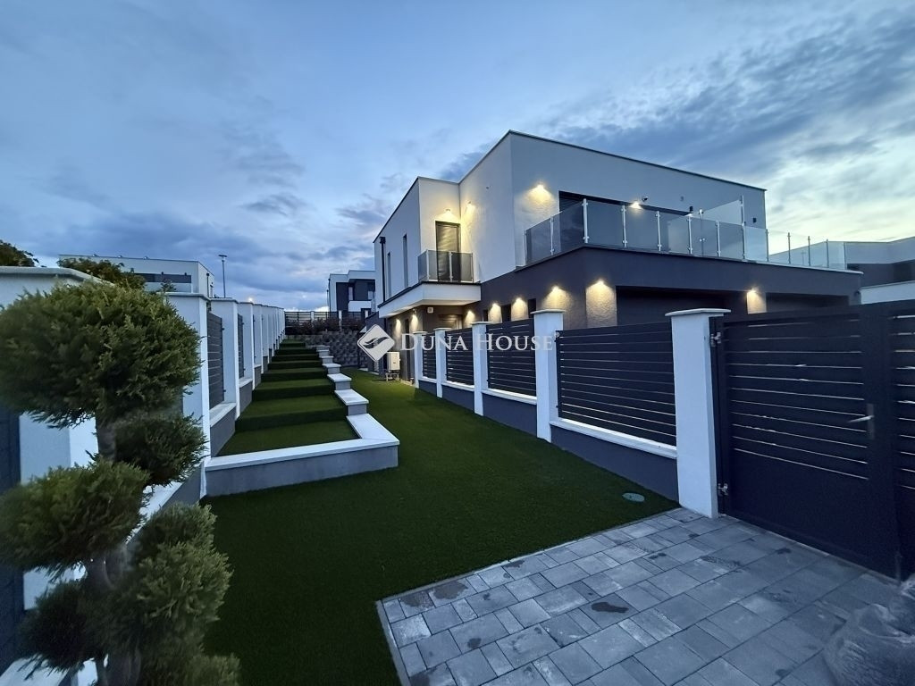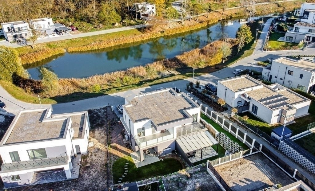 Eladó egy gyönyörű, napfényes téglaépítésű családi otthon a Sissy Villaparkban, közvetlenül a festői Pusztaszentjakabi Tó partján. Az ingatlan modern hőszivattyús és fan-coil fűtési rendszerrel rendelkezik, ami a kellemes belső hőmérséklet mellett a környezetvédelmi normáknak is megfelel. A téglából épült, napfényes ház 2024-ben került átadásra, így Ön lehet az első, aki beköltözhet ebbe a prémium minőségű új építésű otthonba.A Sissy Villapark, ahol az ingatlan található, egyedülálló környezetet kínál leendő tulajdonosainak. A villapark saját erdősséggel és tóval rendelkezik, így garantálva a nyugodt, természetközeli életérzést. Az otthon nagy üvegfelületei és letisztult stílusú, nagy teraszai hozzájárulnak ahhoz, hogy a természet szépsége még közelebb kerüljön Önhöz.A villapark kitűnő választás lehet azoknak a családoknak, akik a nagyváros forgatagától ideális távolságra, mégis minden kényelmi szolgáltatással ellátott, új otthonban szeretnének élni.A villapark útjait díszkővel burkolták, és az éjszakai világítást elegáns kandelláberek biztosítják, ami még inkább hozzájárul a környék exkluzív megjelenéséhez.Ebben a festői környezetben az új otthona nem csak egy ház lesz, hanem egy olyan hely, ahol a mindennapok forgatagából kiszakadva igazán élvezheti az élet nyugalmát. A tó körüli sétány és a napozó stégek tovább növelik ezt az élményt, hiszen így a természet szépsége és a víz nyugalma mindig csak egy lépésre lesz Öntől.Az otthon árában benne foglaltatik a prémium minőségű gépesített konyhabútor és az összes, a képeken látható prémium bútor, így Önnek nem kell plusz költségekkel számolnia az álomotthona berendezésekor.Ne hagyja ki ezt az egyedülálló lehetőséget, hogy a Sissy Villaparkban, Erzsébet királyné egykori kedvelt helyénél lévő, környezettudatos és modern otthon tulajdonosa lehessen.Keressen minket bátran további részletekért és tegye meg az első lépést álmai otthona felé a Sissy Villaparkban!