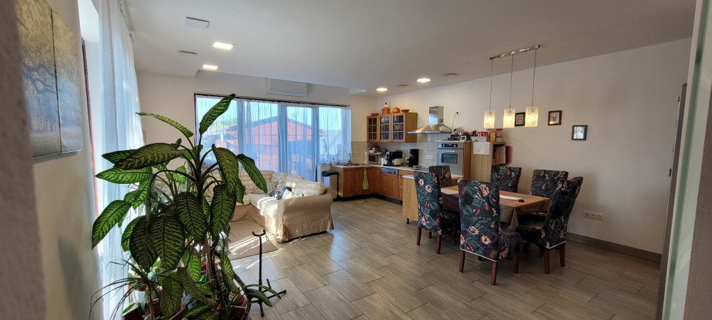 -Világos, tágas amerikai konyhás nappali (kb. 38 m²) nagy ablakokkal