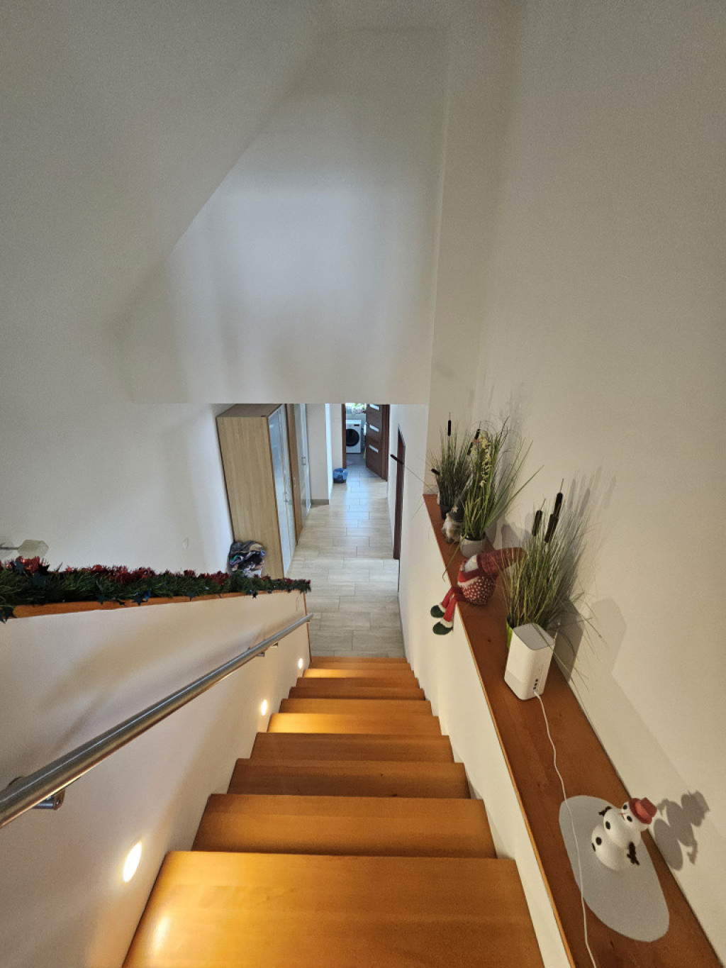 Az 168 m²-es lakótér átgondolt elrendezésű, világos terekkel, pince + földszint + beépített tetőtér kialakítással, 764 m²-es, szépen használható telken helyezkedik el.