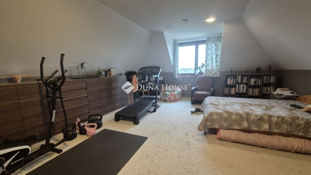 Mogyoród panorámás részén energiatakarékos családi ház, két külön bejáratú lakássalMogyoród egyik legszebb, dombtetőn fekvő panorámás részén, eladó egy 2019-ben épült, kiemelten energiatakarékos családi ház, két külön bejáratú lakással.Az ingatlan összesen 168 m² (130 m² + 38 m² szuterén), 764 m² telken. A szuterénben nappali-konyha, 2 szoba és fürdő található, a földszinten 3 szoba (egy saját fürdővel), amerikai konyhás nappali, további 2 fürdő, vendég-WC és kamra.Az épület Porotherm klíma téglából készült, 1645 cm hőszigeteléssel, háromrétegű fa nyílászárókkal. Fűtése elektromos (H- és vezérelt tarifás órákkal), minőségi japán klímákkal és padlófűtéssel. Központi hővisszanyerős szellőztető biztosítja a friss levegőt. A rezsi rendkívül alacsony: 2024-ben átlagosan 28.000 Ft/hó.A kertben 2 föld alatti esővíztartály, 3 autós térkövezett beálló, 2 tároló, 18 m² kiülő és 12 m² bográcsozó található.Ideális választás többgenerációs családnak vagy befektetésnek: modern, energiatakarékos, azonnal költözhető otthon.