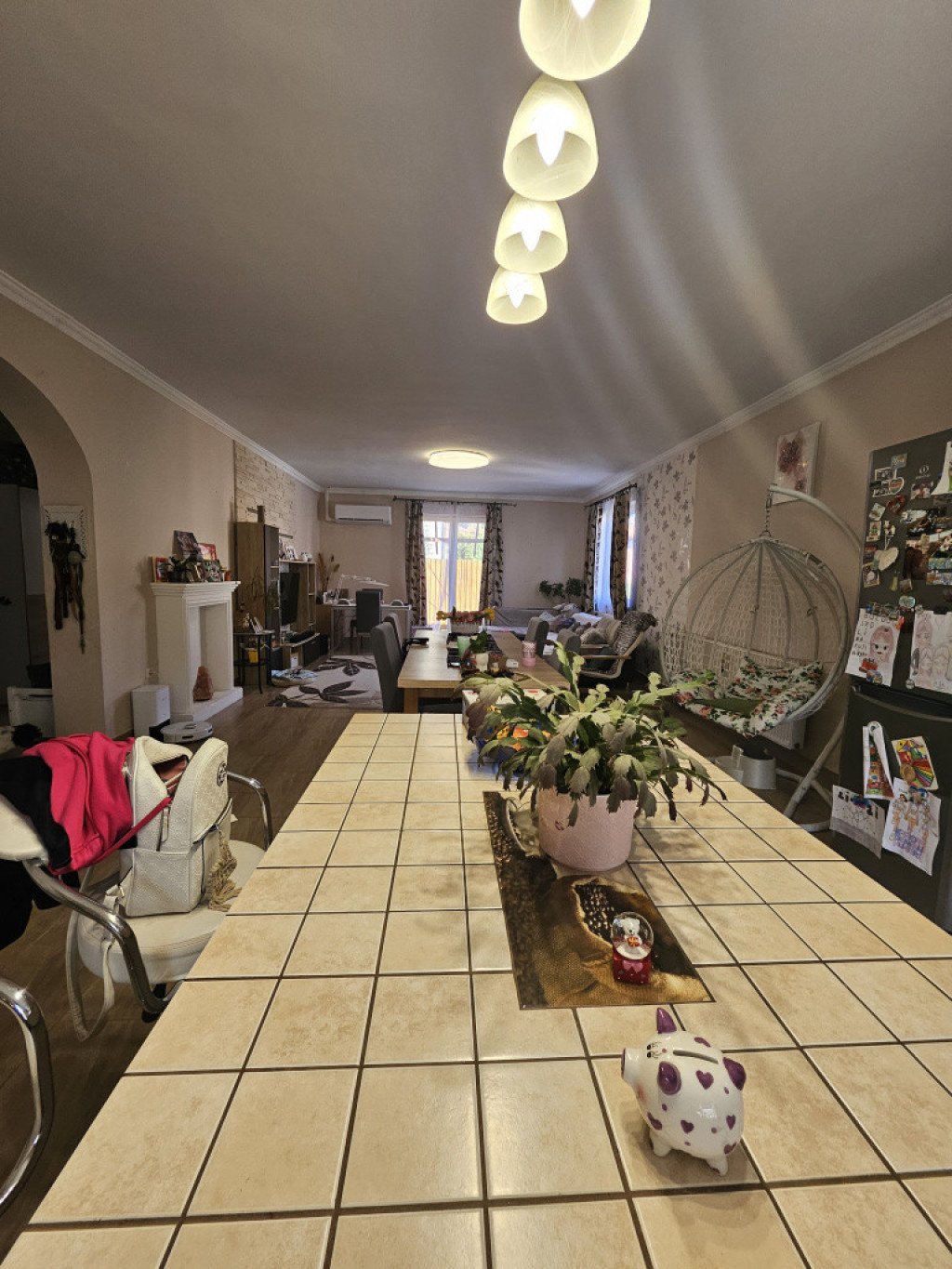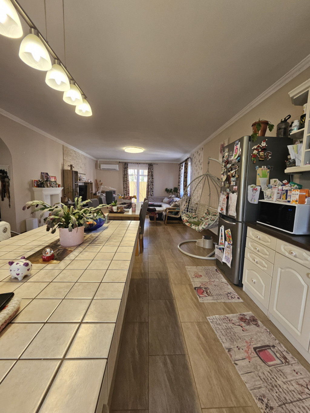 Az ingatlan egyik különleges értéke a 51,12 m²-es amerikai konyhás nappali, amely tágas, világos közösségi térként a ház központja.