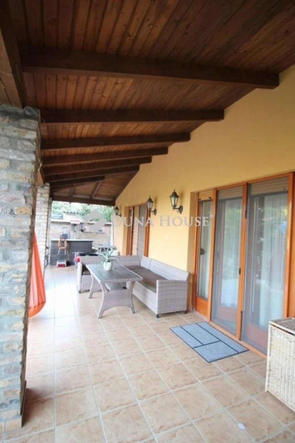 A mediterrán stílusban épült ház magába foglal egy 452,8 m2-es hasznos lakóteret, továbbá összesen 74,7 m2-es fedett terasszal rendelkezik. A két autó számára kialakított garázst térkövezett udvaron keresztül közelíthetjük meg, melyek automatizáltak.
