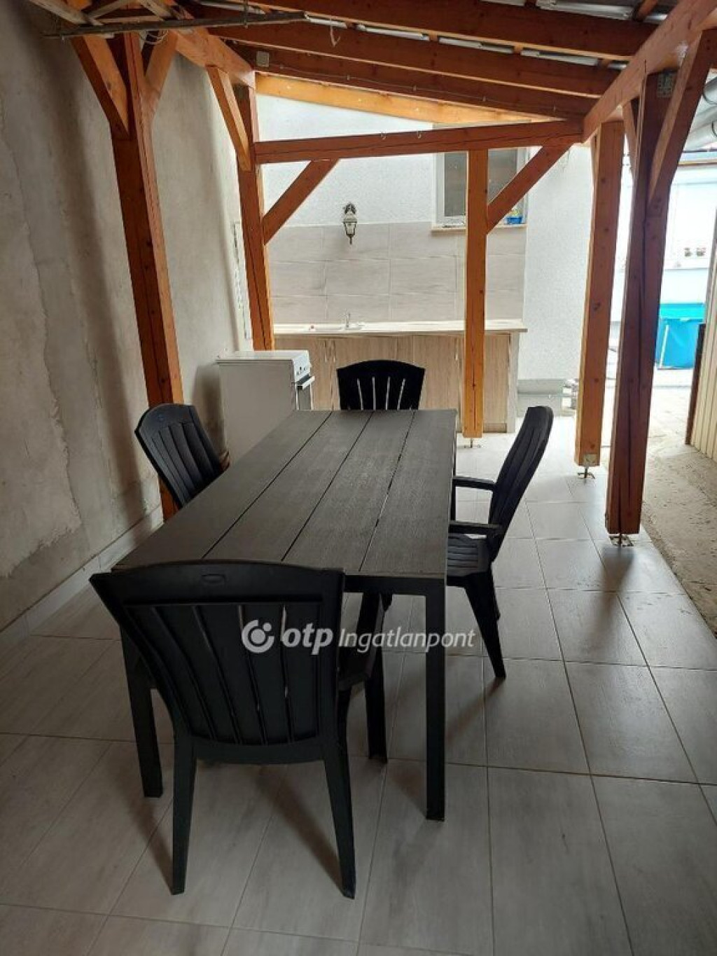 A házhoz első és hátsó fedett terasz is tartozik, így a kültéri pihenés és vendégfogadás is kényelmesen megoldott. A hátsó teraszon kialakított beépített munkapult és mosogató különösen praktikussá teszi a szabadtéri főzést, grillezést és családi összejöveteleket.