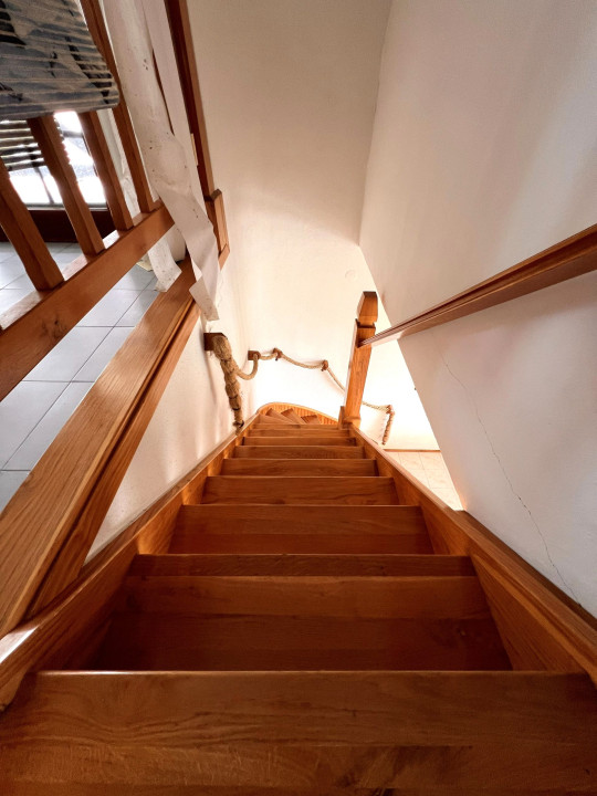 Fűtés: A fűtésről az alsó szinten kandalló gondoskodik, míg a felső szinten a nappaliban egy cserépkályha, a szobákban pedig dupla kéményes kandallók biztosítják a meleget.
