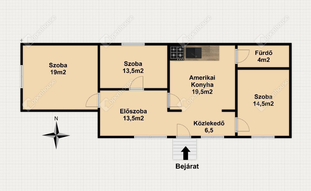 3 szoba + nagy konyha – jó elosztás, tágas és világos terek