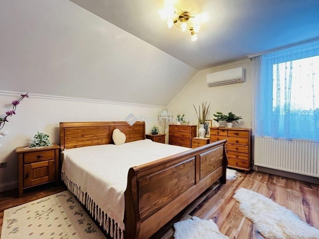 Az emeleti szinten, ahova házi lifttel lehet feljutni megtalálható 2 önálló bejáratú szoba, az egyik erkélyes, egy pazar fürdőszoba zuhanyzóval, toalettel és a közlekedő.