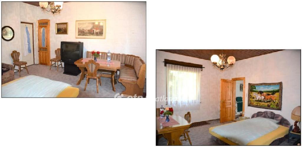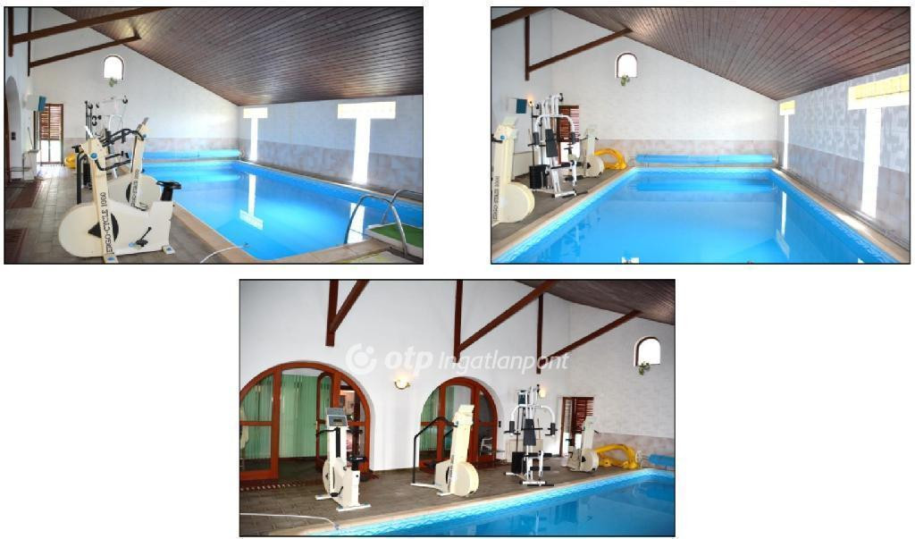 1. Egy földszintes, 560 nm-es házban egy tágas konyha-étkező (a nyári időszakban az étkezőből közvetlenül ki lehet ülni a nagy méretű teraszra, ha esetleg panzióként működne ez a több hálószobás épület, de privát családi vagy baráti összejövetelekhez is kiváló lehetőség), nappali szép kandallóval, 5 darab nagyon jó állapotú, hasonló méretű, bútorozott hálószoba és négy fürdőszoba (1 fürdőszoba/zuhanyzó/WC és 3 zuhanyzó/WC) is található, továbbá egy fedett edzőterem medencével és szaunával.