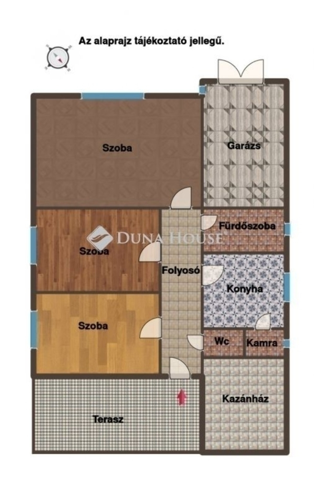 Az ingatlanba hátulról, az udvar felől jutunk be, egy nagy, fedett, egybeépített teraszról, amely kiváló közösségi térként vagy pihenőrészként is használható.