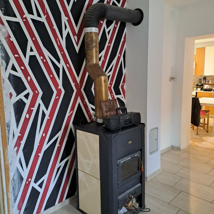 Fűtése egy rendszerről, kombi gáz cirkóval és vízteres kandallóval üzemeltethető, mely a 2. lakásban van.