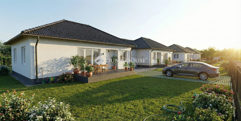 Monoron eladó, újépítésű, 3 szoba + nappalis, garázskapcsolatos ikerházfél, kb., 250 nm-es telekkel, ajándék konyhabútorral! 2.lakás!A hirdetésben szereplő képek látványtervek! Várható átadás : 2026 szeptemberÖnálló helyrajzi számmal fog rendelkezni, nem osztatlan közös tulajdon, társasház alapító lesz.10 % önerővel szerződhető!Helyiségeit tekintve nagyon jó elosztással rendelkezik, alábbiakban sorolom fel négyzetméterek megjelölésével:- 3 önálló bejáratú szoba (9.75 nm, 9.36 nm, 10 nm)- teraszkapcsolatos nappali (18.18 nm)- konyha + étkező (7.91 nm)- előszoba (4.95 nm)- közlekedő (3.68 nm)- fürdőszoba (5.07 nm)- wc (1.35 nm)- háztartási helyiség (5.04 nm)- kamra (2.05 nm)- garázs (13.49 nm)- nyitott terasz (15.20 nm)Műszaki leírás: Immergas Victrix 28 gáz komb cirkóPadlófűtés mindenholAriston Hőszivattyús bojlerMidea vagy Gree légkondi NappalibanElektromos aluminium redőnyök a szobákban és a nappalibanKonyha- igényre szabva, gépek nélkülBurkolat 8.000 Ft/nm2Beltéri ajtók 80.000 Ft/dbSzekcionált garázskapu + elektronikaYtong tégla10cm Grafitos hőszigetelés30 cm üveggyapot tető hőszigetelés10 cm lépésálló szigetelés padlóra3D kerítésAz ár kulcsrakészen értendő!A lakás 1 km-es körzetében megtalálható:Pékség, Cukrászda, Gyógyszertár, Posta, Vendéglő, Könyvtár, Zöldséges, Rossmann, Dm, Élelmiszer boltok, Okmányiroda, Bankok(Takarék,Otp, Budapest Bank), Piac, Bölcsöde, Óvoda, Iskola, Gimnázium,Uszoda, Elektromos autó töltő.Monor a dél-kelet pesti agglomerációban, a dinamikusan fejlődő főváros és vonzáskörzete, a jó minőségű lakókörnyezetet egyre színvonalasabb közszolgáltatásokkal is biztosító, egyúttal a befektetők számára is vonzó település.Monor olyan város, ahol jó élni, ahol jó befektetni.Kiváló közlekedésének köszönhetően az ország bármely pontja könnyen elérhető Monorról.Amennyiben felkeltettem érdeklődésed keress nyugodtan, és gyere, nézd meg velem az ingatlant!Hitel ügyintézés, eladás és vétel teljes körű ügyintézése, ingyenes tanácsadás, értékbecslés, megbízható ügyvédi háttér biztosítása.