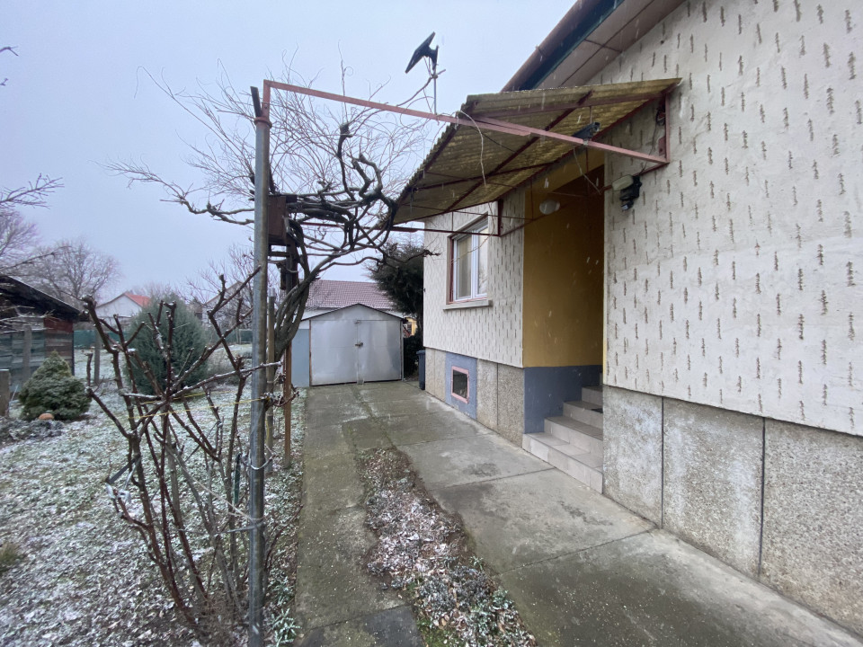 Az udvarban garázs és mögötte is egy különálló tároló épületke van még elhelyezve.