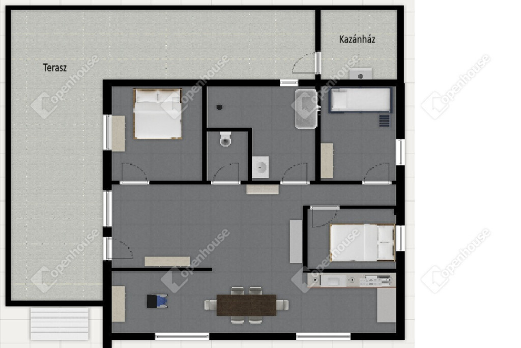 3 különálló hálószoba, így a gyerekeknek vagy vendégeknek is biztosított a privát szféra.