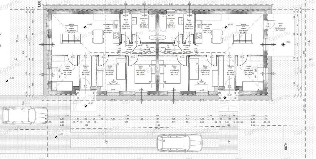 Az ingatlanhoz 200 nm-es privát telek tartozik