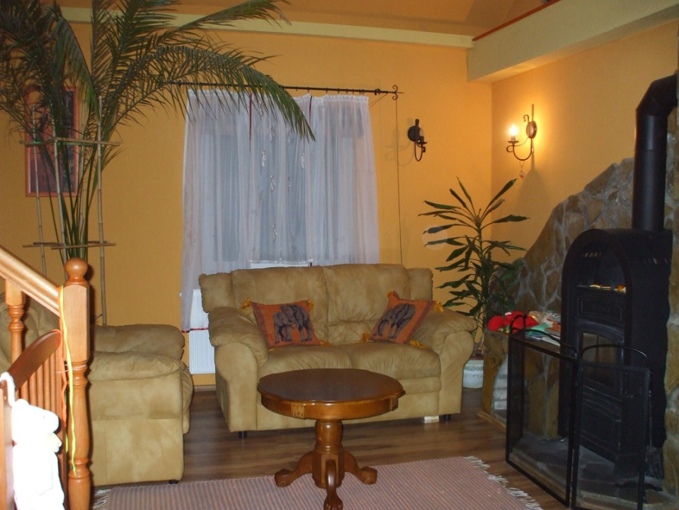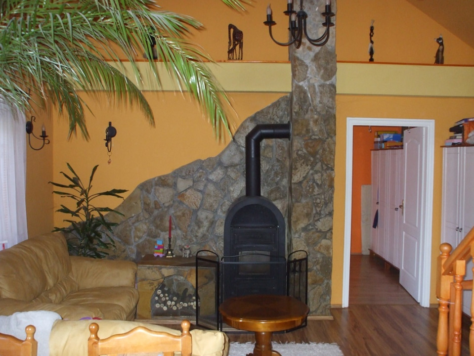A fűtésről és meleg víz ellátásról kombi gázcirkó gondoskodik, ezen kívül egy kandalló is található a nappaliban.
