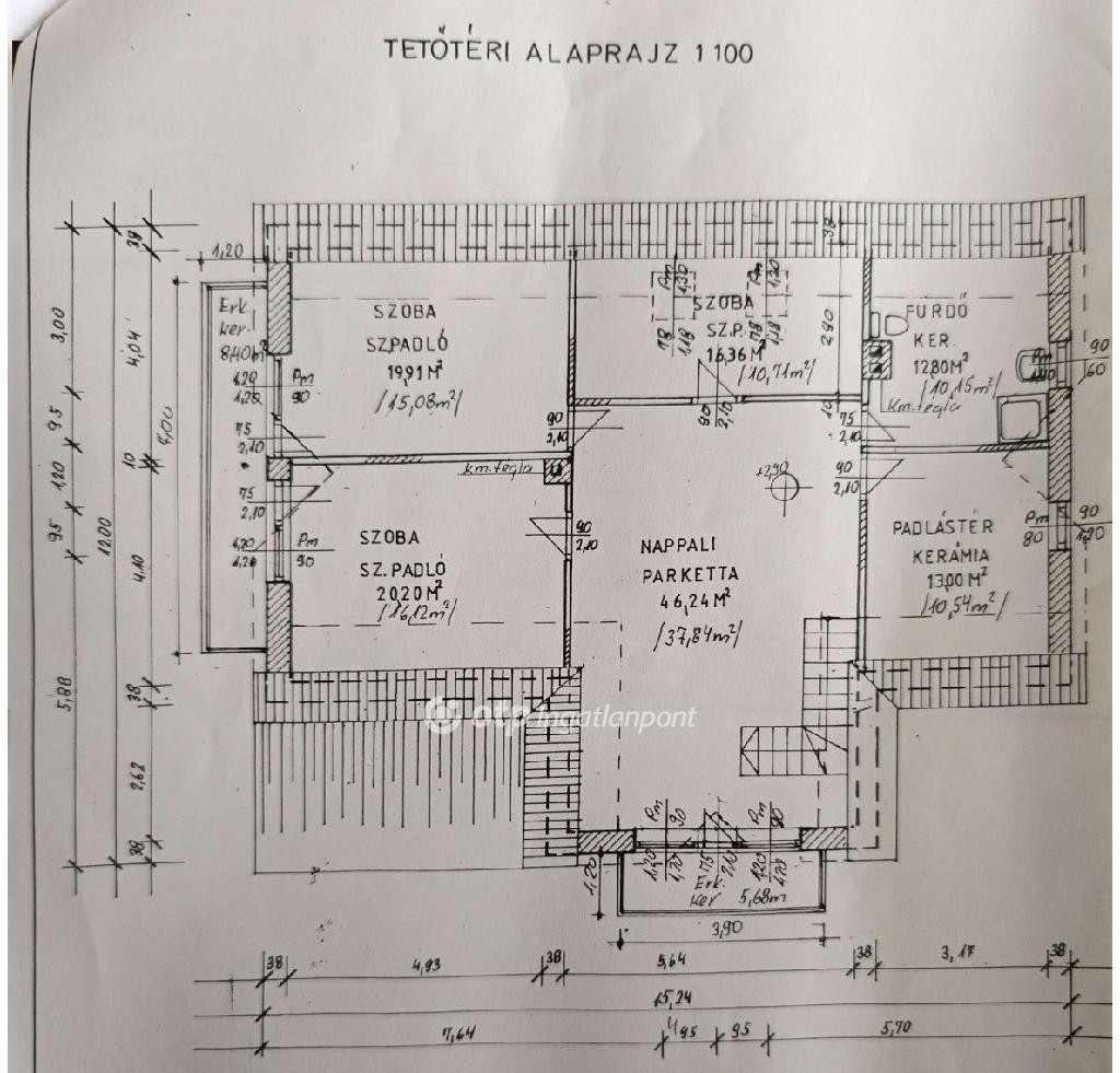 A tető cserépfedésű, jó állapotú szerkezettel.