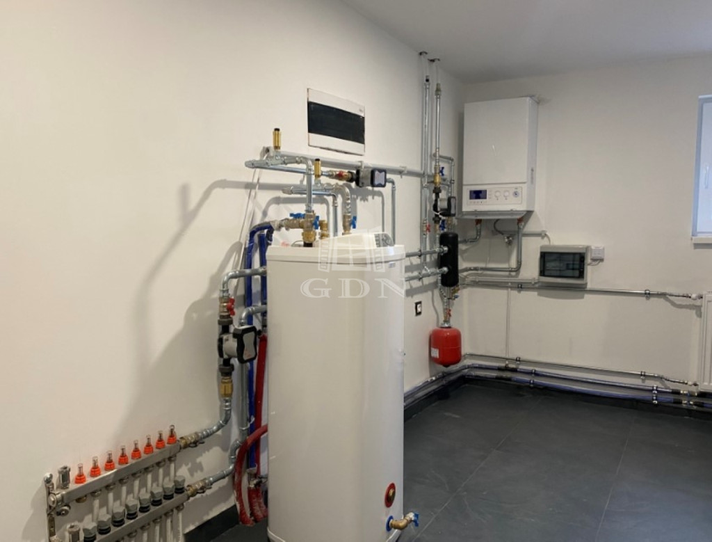 Az otthon melegét H-tarifás villanykazán biztosítja radiátoros és padlófűtéses hőleadással, a melegvizet pedig villanybojler szolgáltatja.