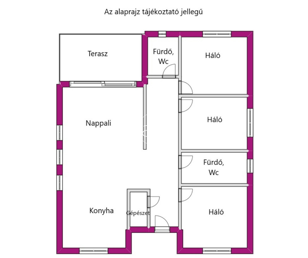 Három teljes értékű szoba, két tágas fürdőszoba került kialakításra, az amerikai konyhás nappali mellett.