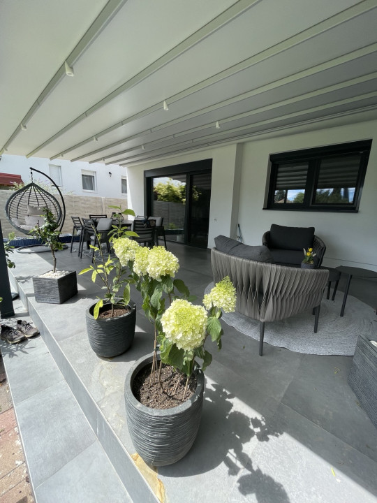 A ház egyik kiemelkedő része a 45 m²-es fedett terasz, amely tökéletes helyszín pihenéshez, családi étkezésekhez vagy baráti összejövetelekhez.