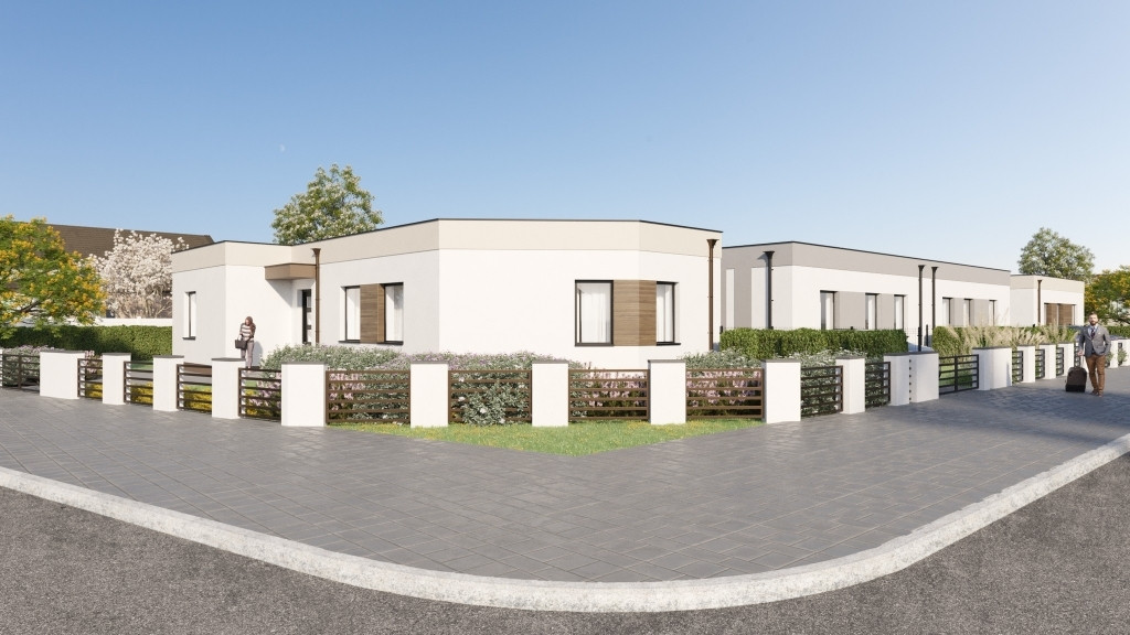 Mosonmagyaróváron, a Duna Lakópark csendes és biztonságos környezetében kínálunk megvételre egy új építésű, modern, egyszintes családi házat. Az ingatlan tervezésekor a legfőbb szempont a családok igényeinek kiszolgálása és a maximális energiahatékonyság volt.