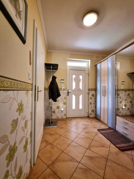 A nyílászárók műanyagok redőnyökkel és szúnyoghálókkal felszerelve. A fűtés hőszivattyúrendszerrel működő hútés/fűtés melyet a napkollektorok állítanak elő így költségmentes. A bejárat mellett 30 m2-es hangulatos télikert található klímával felszerelve. Az otthon kamerarendszerrel felszerelt. Az udvar rendezett, részben térkövezett részben pedig parkosított. Területén 25 m2-es garázzsal. Az öntözés automata öntözőrendszerről működik kútról. A kapu elektromos. Ipari árammal ellátott terület.