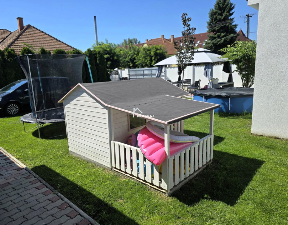 A melléképület 60 m2-es fa szerkezetű szigetelt épület műanyag ablakokkal. Jelenleg edzőteremként használják. Az udvar rendezett, részben térkövezett részben pedig füvesített. Adottságát tekintve kiváló fekvésű saroktelek mely 2 utcafrontra nyílik. A térköves udvarrész akár 4 autó parkolására is alkalmas. Remek lehetőség ha kényelmes életterekkel rendelkező azonnal költözhető otthont keres! Az infrastruktúra kiváló, a ház közelében iskola, óvoda, üzletek is néhány percnyire vannak.