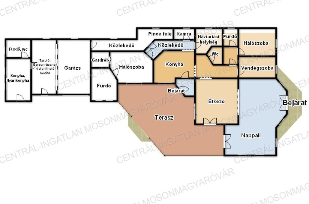 -Egy önálló bejáratú apartman kialakítása is elő van készítve, ami a garázs után található. A 42.5m2-es garázs egy részének leválasztásával, már készen is van a konyha, fürdő, nappali helyiségekből álló kis lakás. További két hálószoba is kialakítható a ház lakórészén, ha erre igény mutatkozik.