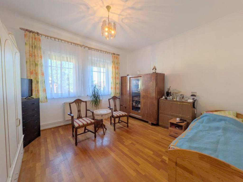 Tágas terek: két földszinti, kb. 20 m²-es szoba + két 10 m²-es félszoba az emeleten.