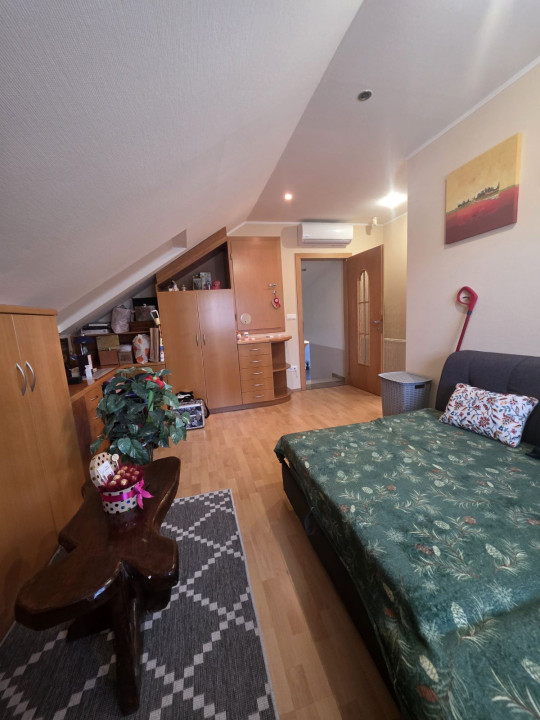 Mosonmagyaróvár egyik legkedveltebb, csendes lakóparkjában található, családbarát környezetben kínálok megvételre egy 2003-ban épült 900 m2 telken lévő 160m2 -es családi házat. Az ingatlan felosztása a földszinten: előtér, étkező, konyha, spájz, nappali, közlekedő, háztartási helyiség, fürdő (zuhanyzóval)-WC, hálószoba. Felosztása az emeleten: közlekedő, 2 hálószoba, fürdő(kádas)-WC. Szint eltolással pedig az ingatlanból jól megközelíthető egy nagyméretű garázs és egy télen nyáron használható fedett medence ház, ahol egy 3,5 m x 5,5 m-es medence kapott helyett. A ház folyamatosan karban tartott, a legutóbbi felújítás 2024-ben volt, ahol a fürdőszoba kapott új burkolatokat. Kiépített kamera- és riasztórendszer található az ingatlanban. Az ingatlan nyílászárói műanyag szerkezetűek, melyek két rétegű üvegezéssel készültek, szúnyoghálóval és redőnnyel felszereltek. A ház fűtéséről kondenzációs gázkazán gondoskodik radiátoros hőleadással. A kellemes hőérzetet továbbá kettő inverteres klíma biztosítja. A tető betoncserép héjazattal, Porotherm födémmel készült (pakolható padlás). A telek 900 m2 nagyságú, mely szépen rendezett, elektromos kapuval ellátott, körbekerített. A telken található egy fedett autóbeálló és egy kb. 40 m2-es fa szerkezetű kerti tároló. A ház bútorzata megegyezés tárgyát képzi. Az ingatlan megfelel a CSOK Plusz és az Otthon Start hitel feltételeinek. Az ingatlan kiválóan alkalmas kis- és nagycsaládosok számára is. Amennyiben az eladó ingatlan felkeltette az érdeklődését, hívjon a megadott telefonszámon +36705743944 vagy írjon e-mailt az ildi.wsc@gmail.com címre. Az ingatlan megtekintése előre egyeztetett időpontban lehetséges. Irodánk teljeskörű hitelügyintézésben is rendelkezésre áll.