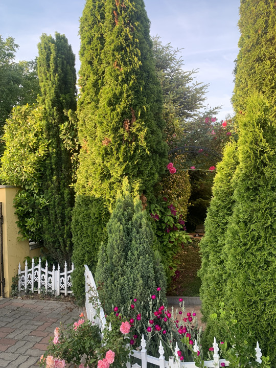 Az ingatlanhoz tartozó kb 250 nm-es kert szépen gondozott, növényekkel beültetett, intim, zárt jellegű.