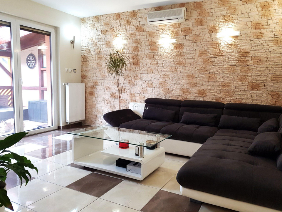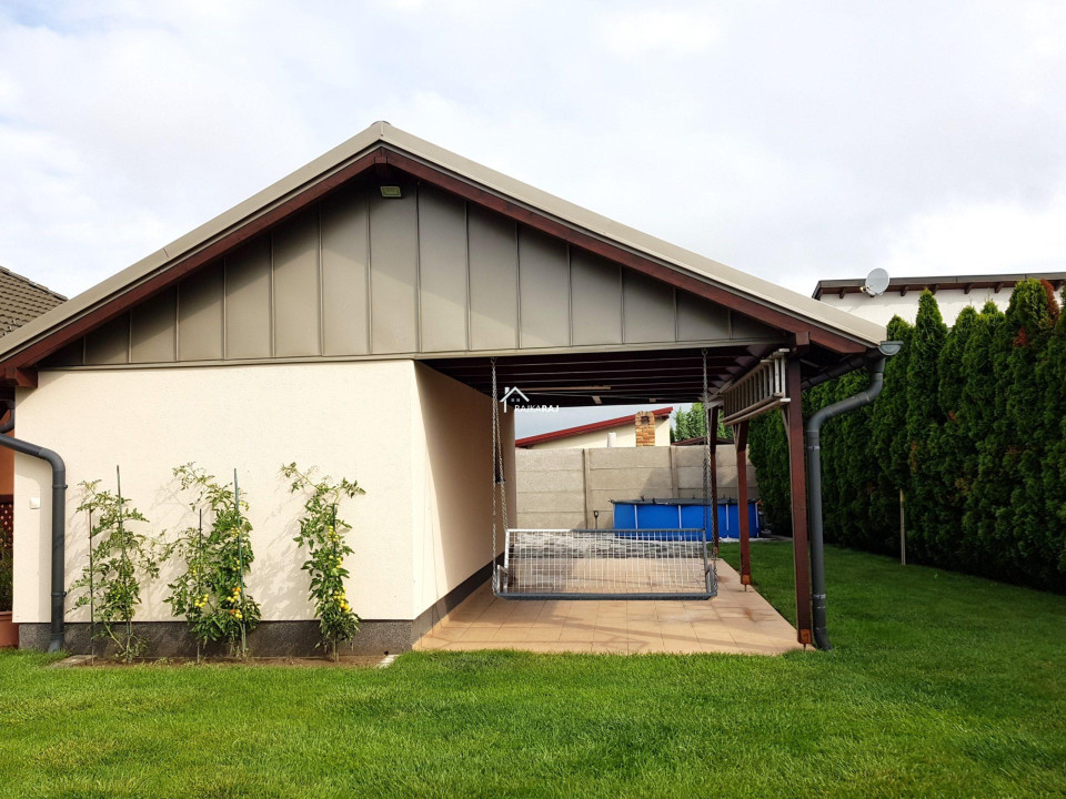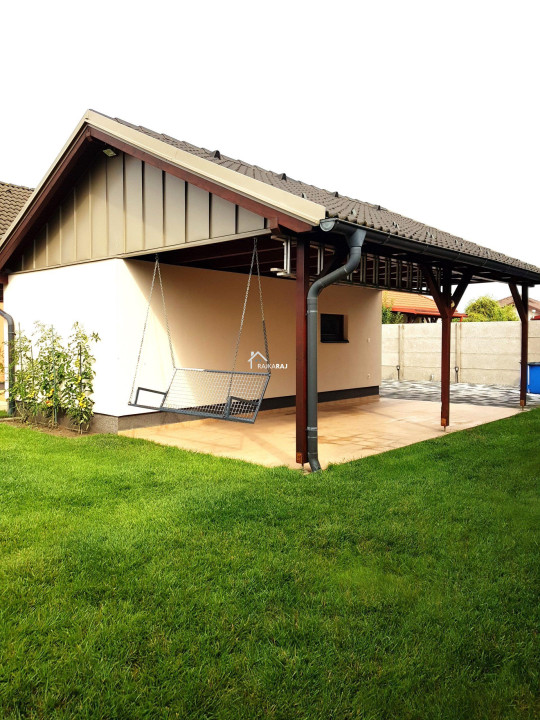 A nappali világos és kedves része az otthonnak ahonnan egy 14 m2-es fedett terasz nyílik. A nyílászárók műanyagok, redőnyökkel és szúnyoghálókkal felszerelve. A fűtés gázfűtés kondenzációs gázkazánnal, padlófűtéssel a szobákban pedig radiátoros hőleadással. Az otthon inverteres klímával felszerelt. Az udvar rendezett, területén praktikus tárolóval, garázzsal, fedett kocsibeállóval illetve egy nyári konyha helyiséggel. Területének egy része térkövezett, másik része pedig füvesített melynek öntözése kútvízről öntözőrendszerrel megoldott. A parkolás garázsban és fedett beálló alatt is lehetséges. A lakáshoz külön kis tárolóhelyiság is tartozik. Az udvaron grillező és “nyári konyha” épületként kialakított melléképület áll, mely akár hűvösebb időben is remekül funkcionál. Kiváló lehetőség ha Ön praktikusan kialakított fiatalos otthonra vágyik építkezés illetve felújítás nehézségei nélkül! Ára: 89.900.000.- forint.