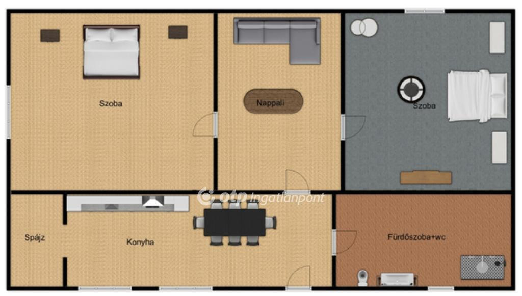 -a belső helyiségben : 2 szoba , konyha , spájz , fürdőszoba+wc lett kialakítva.
