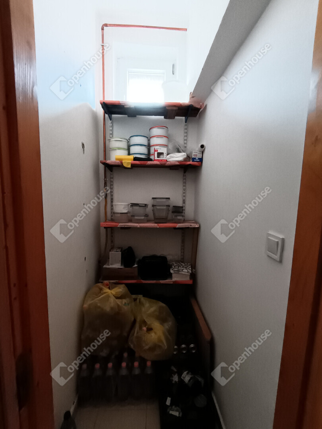 földszinten: tágas szoba, nappali, fürdőszoba, wc, konyha, kamra, közlekedő, kazánház, tároló