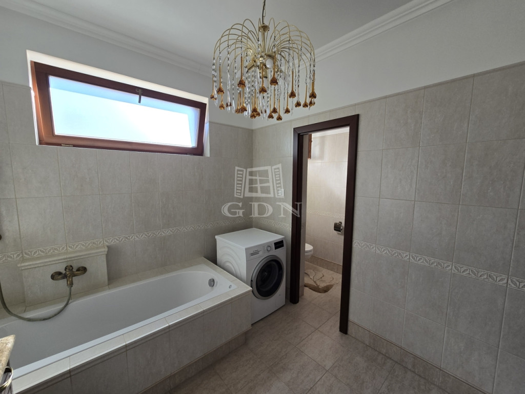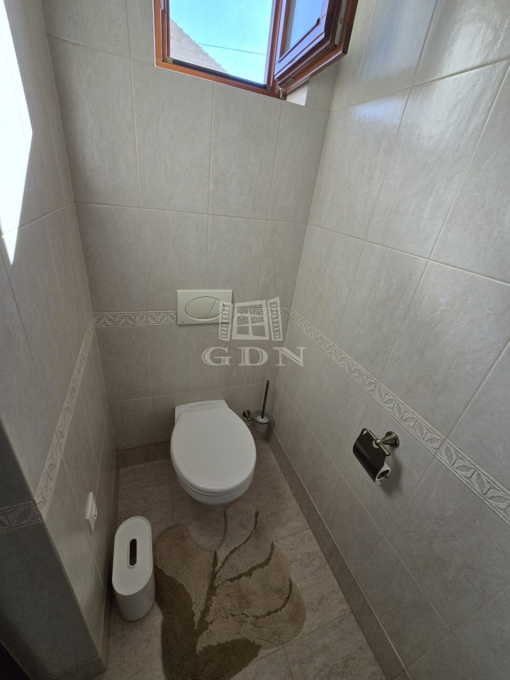 A földszinti lakótér három tágas szobából, egy világos, nagy méretű konyhából, kamrából, több mint 15 m²-es étkezőből, fürdőszobából, külön WC-ből, valamint előszobából áll. A helyiségek elosztása átgondolt és praktikus, a ház kiváló fényviszonyokkal rendelkezik, minden helyiség tágas és világos.