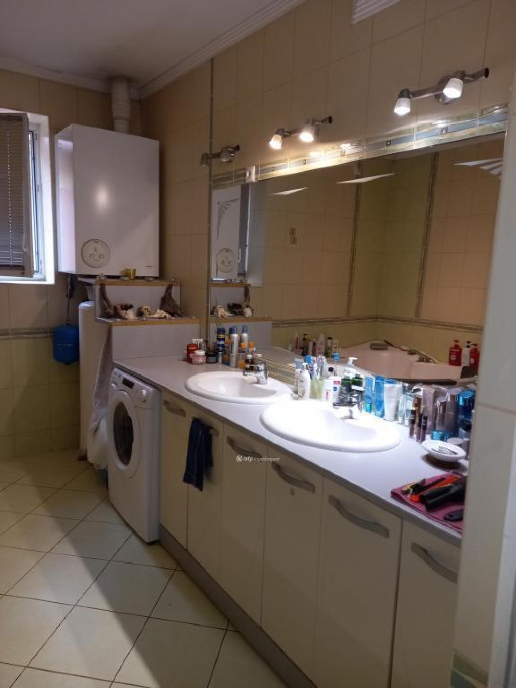 Padlófűtés az előszobában, nappaliban, étkezőben, konyhában és fürdőben, radiátoros fűtés a szobákban. A nappaliban található egy vízteres kandalló is, de alapvetően gázfűtéses a ház. Az épület műanyag nyílászárókkal rendelkezik, melyek reluxával lettek felszerelve. Az ingatlan lemeztetős, párazáró fóliával ellátva. A riasztórendszer kiépítve, bár beüzemelve nincs, mert a környék nagyon biztonságos.