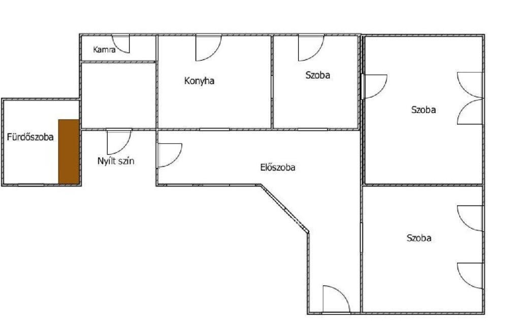 A nyílt szín mellett, a padlásfeljáró melletti helyiségben került kialakításra egy nagyobb fürdőszoba, mely a nyílt színnel és így a ház hosszú közlekedőjével egybe nyitható. A tető is jó állapotú.