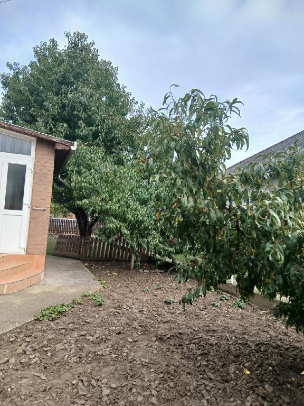 Az ingatlan rendezett, tágas udvarral rendelkezik, ahol cseresznyefa, diófa és őszibarackfa található.