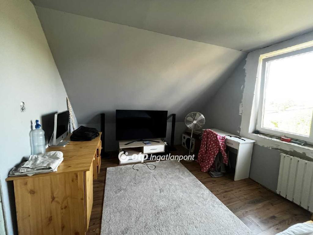 Helyiségek: földszint: amerikai konyhás nappali, szoba, fürdőszoba, WC egyben, közlekedő, előszoba; tetőtér: 2 szoba, van egy hálószoba és egy nappali egyben galériarésszel, nincs lefalazva a lépcsőfeljáró.