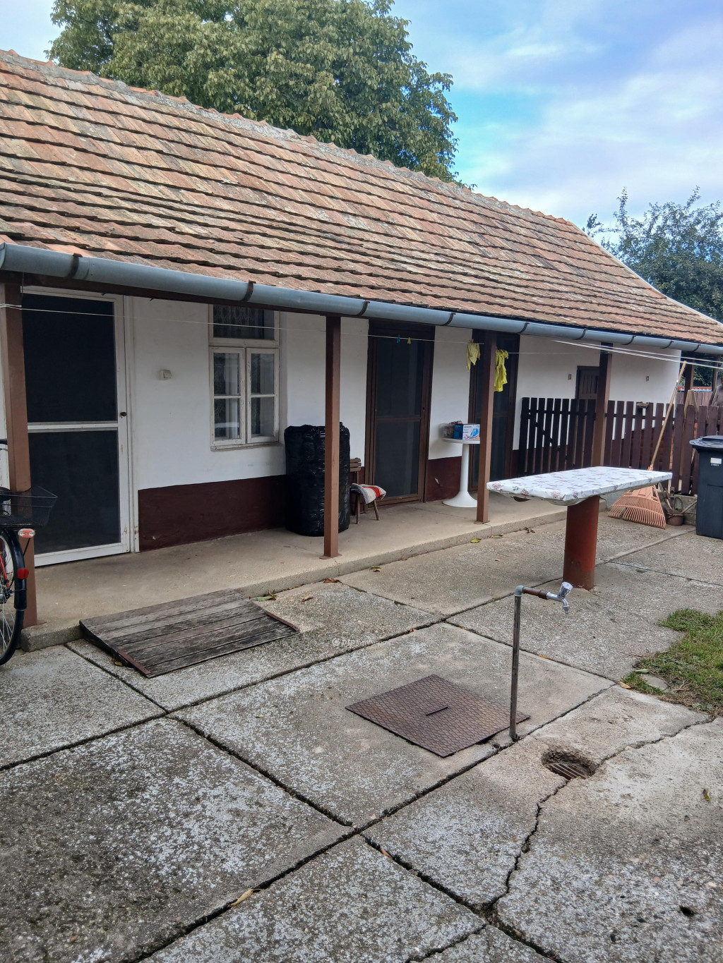 Az ingatlan rendezett, tágas udvarral rendelkezik, ahol cseresznyefa, diófa és őszibarackfa található.