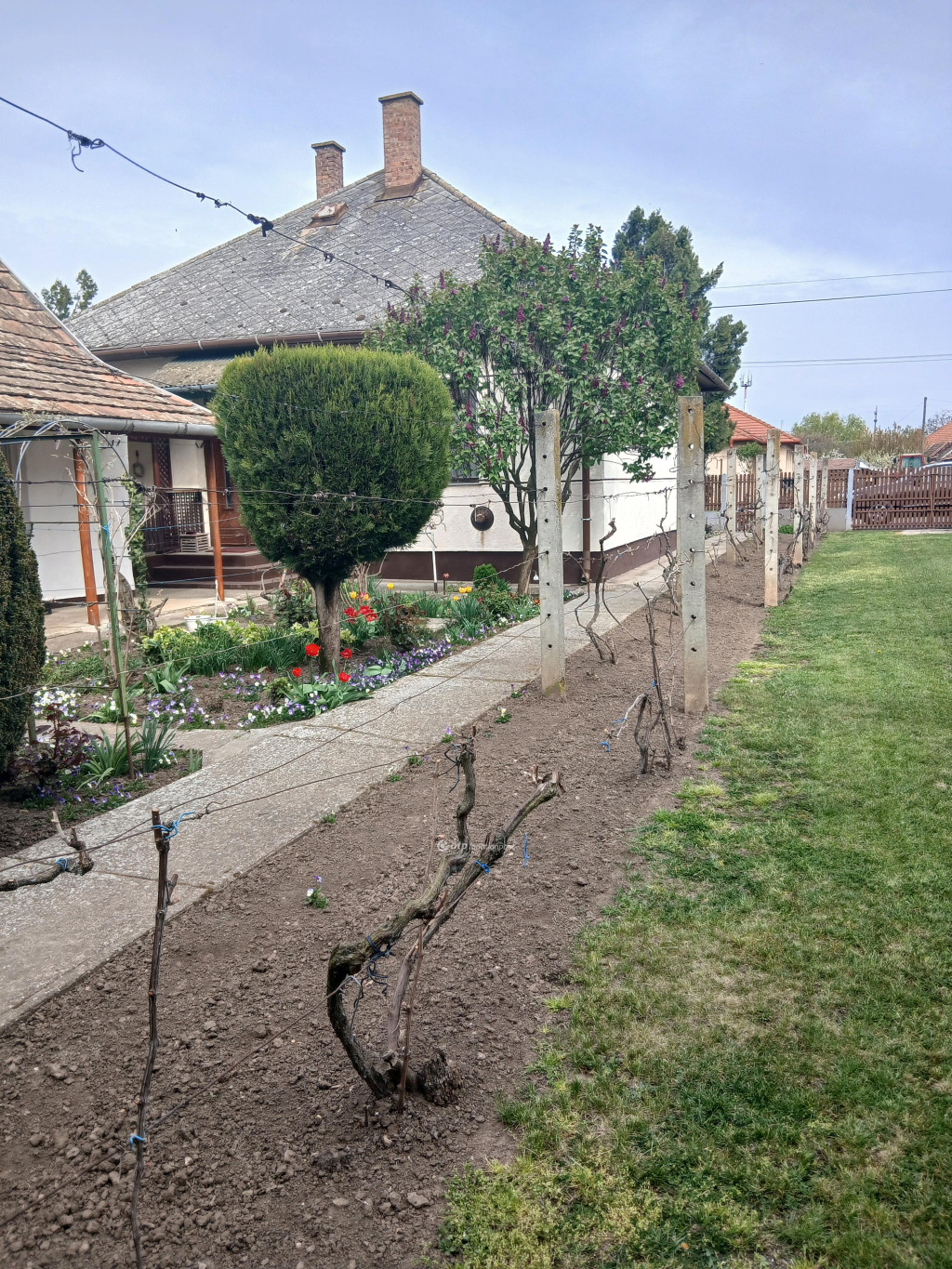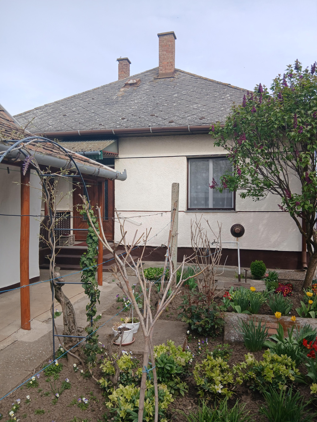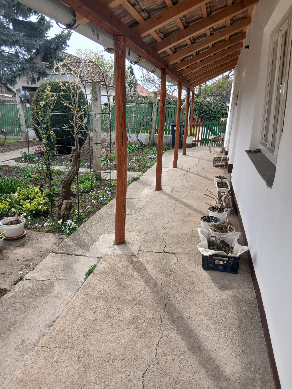 Az ingatlan rendezett, tágas, virágos udvarral rendelkezik, ahol 45 m2-es melléképület /nyári konyha, kamra és ólak/, garázs /6x4 m/ található.