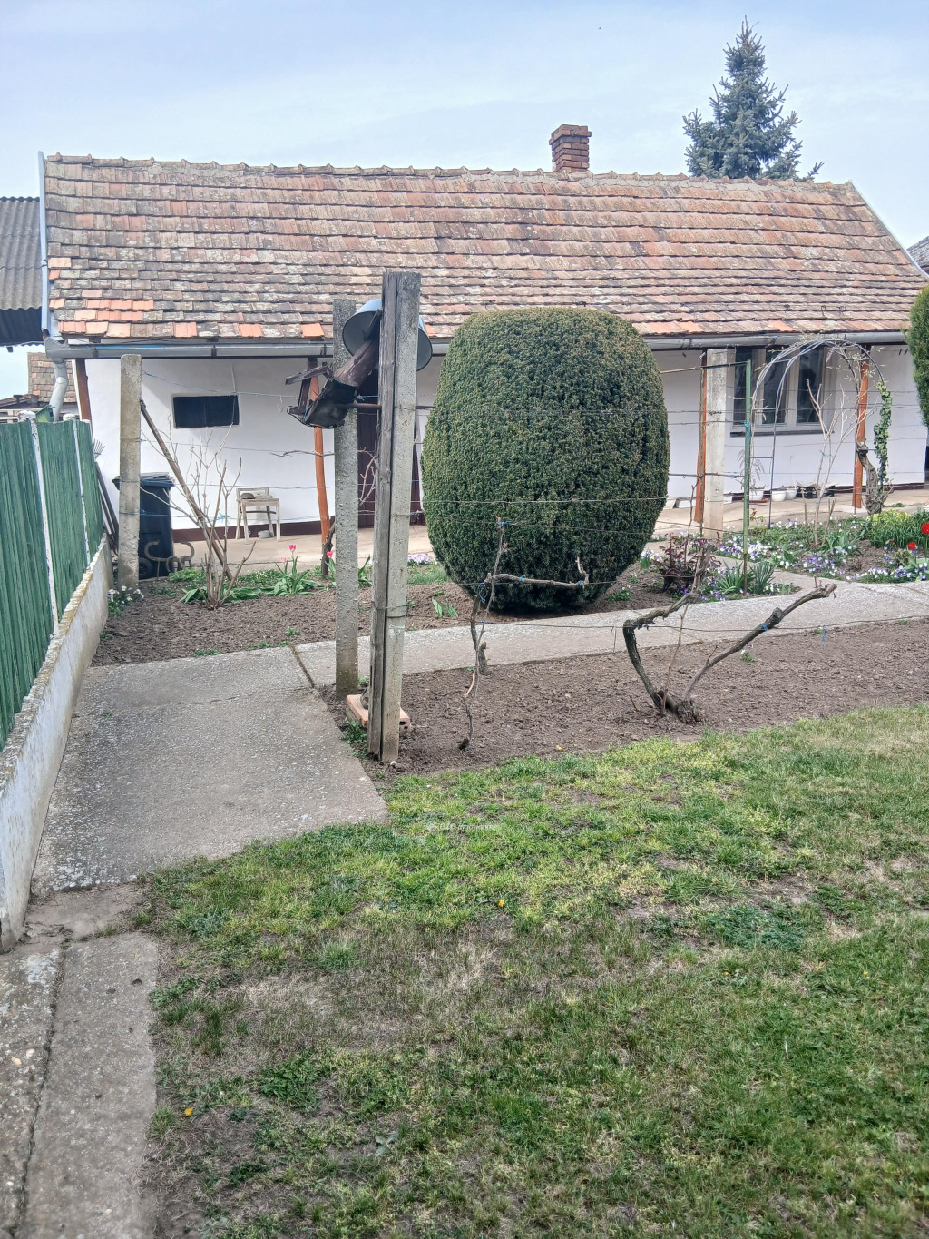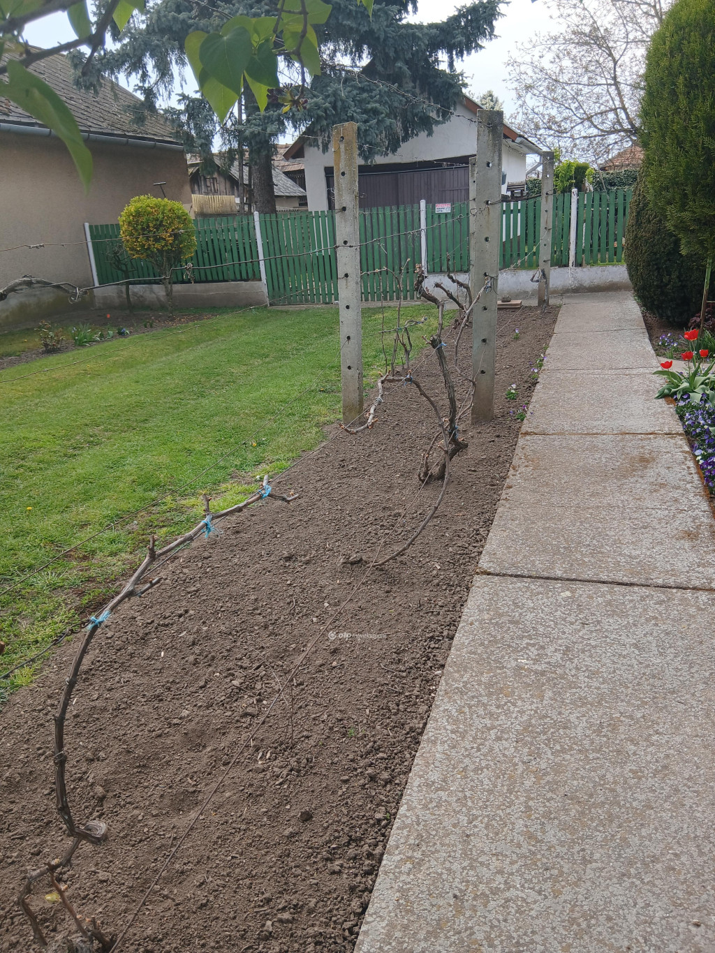 A telek területe: 833 m2, körbekerített.