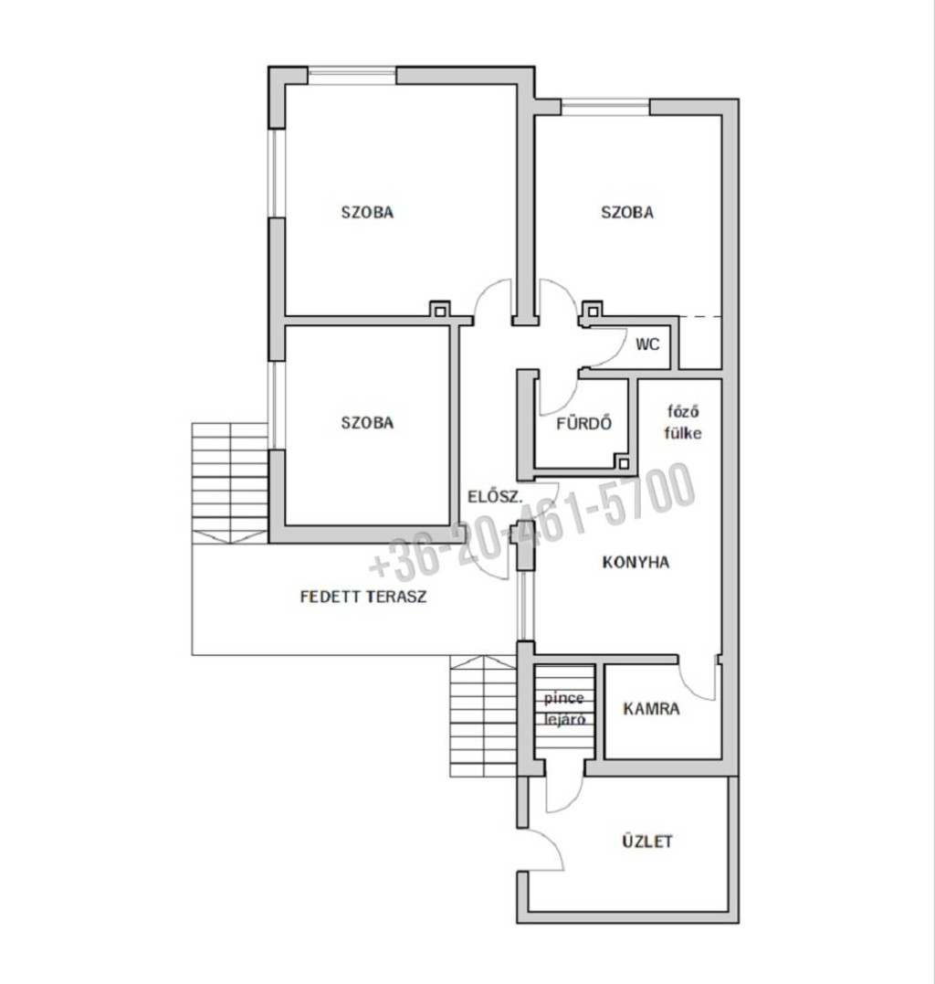 Az ingatlan részeként két külön bejárattal rendelkező üzlethelyiség is kialakításra került, amely felújítás után üzleti célra is hasznosítható.