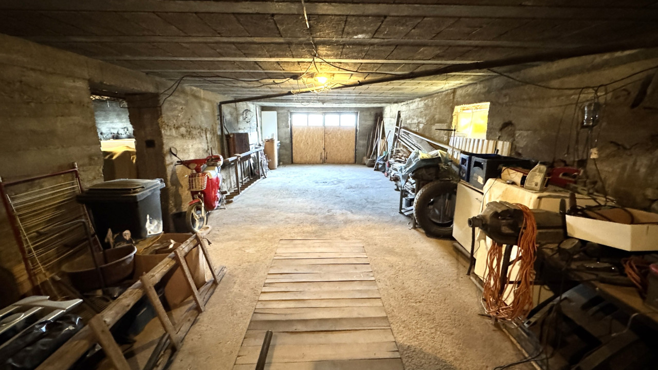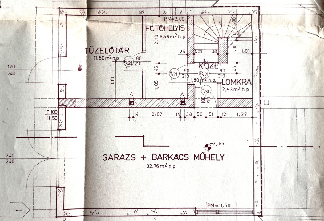 Alsó földszinti része: 90 m² -es, dupla szerelőaknás garázs, tároló kazánház.