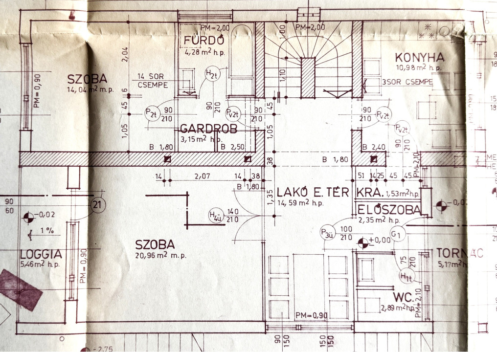 Méret: 180 m² + 85 m² beépíthető tetőtér.
