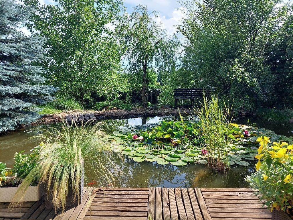 A telek 1067 nm nagyságú, gyönyörűen parkosított, különleges fákkal és örökzöldekkel van beültetve.
