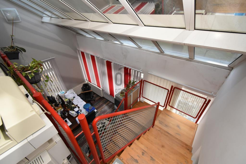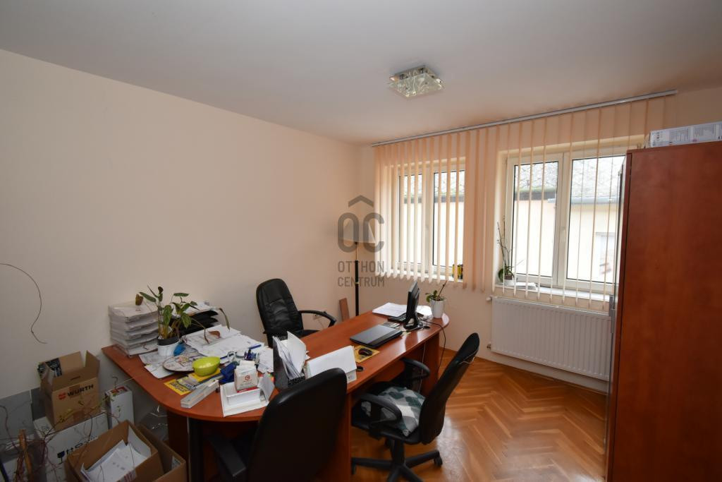 - 8 szoba méretű helyiség van jelenleg létrehozva, amelyek iroda funkciót töltenek be, 2 db erkély, egy terasz, garázs, tárolók, vizesblokkok, közlekedők és egy üzlethelyiség.