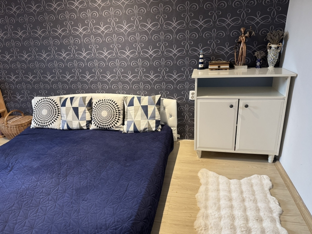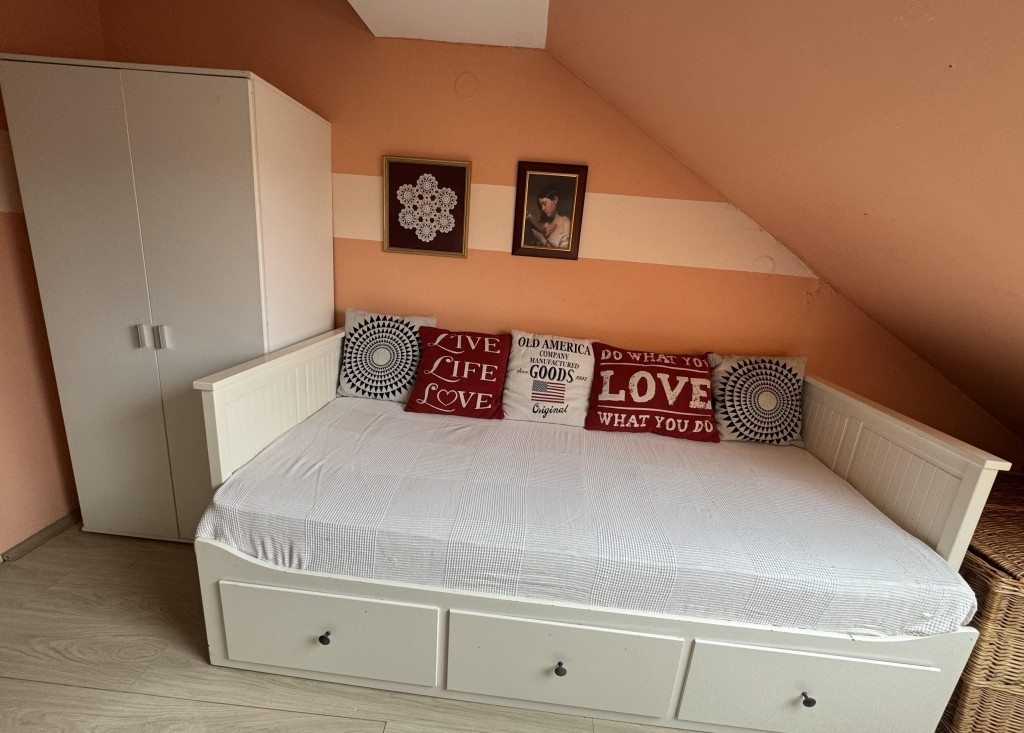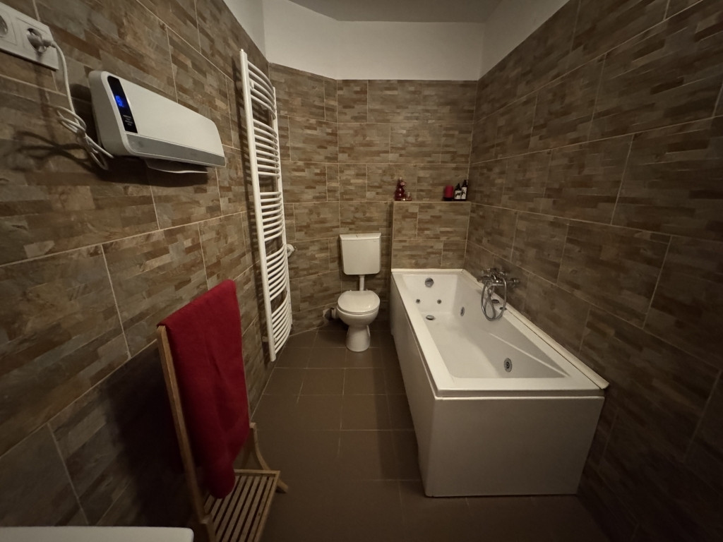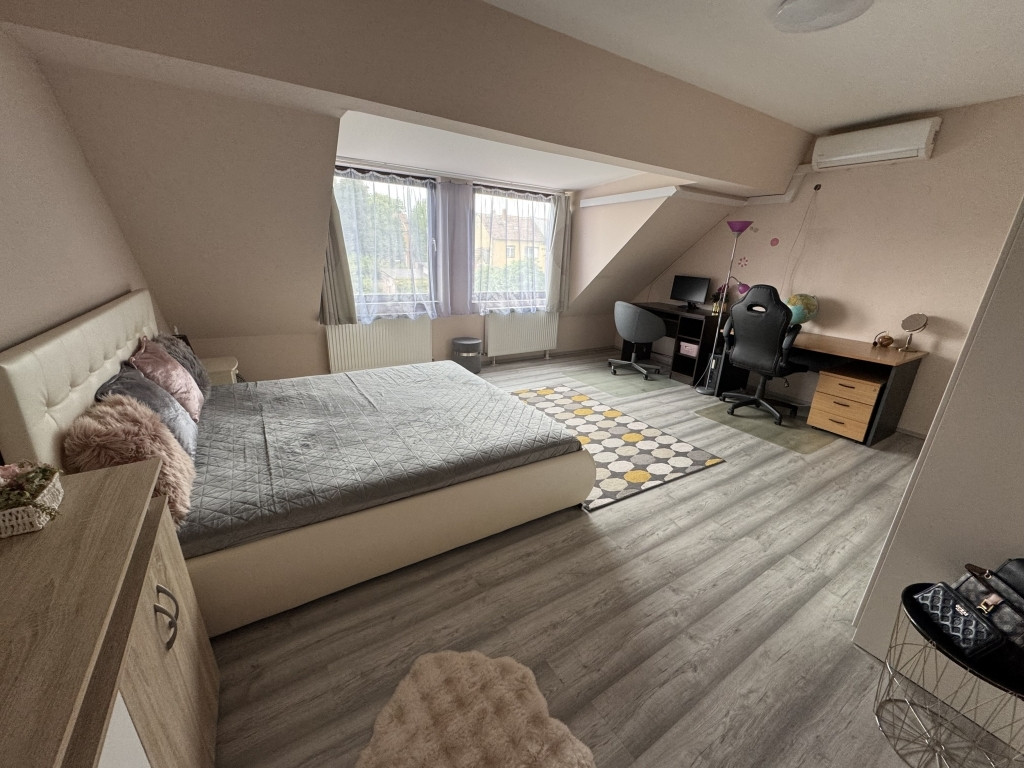 A következő félszinten egy hálószoba, egy mosókonyha és egy igényesen kialakított, olasz jacuzzikádas fürdőszoba található. Efölött két további hálószoba kapott helyet, míg a legfelső szinten egy 30 m²-nél is nagyobb szülői háló található, saját mosdóval, ahol a fürdőkád vagy zuhanykabin kiépítése már elő van készítve.